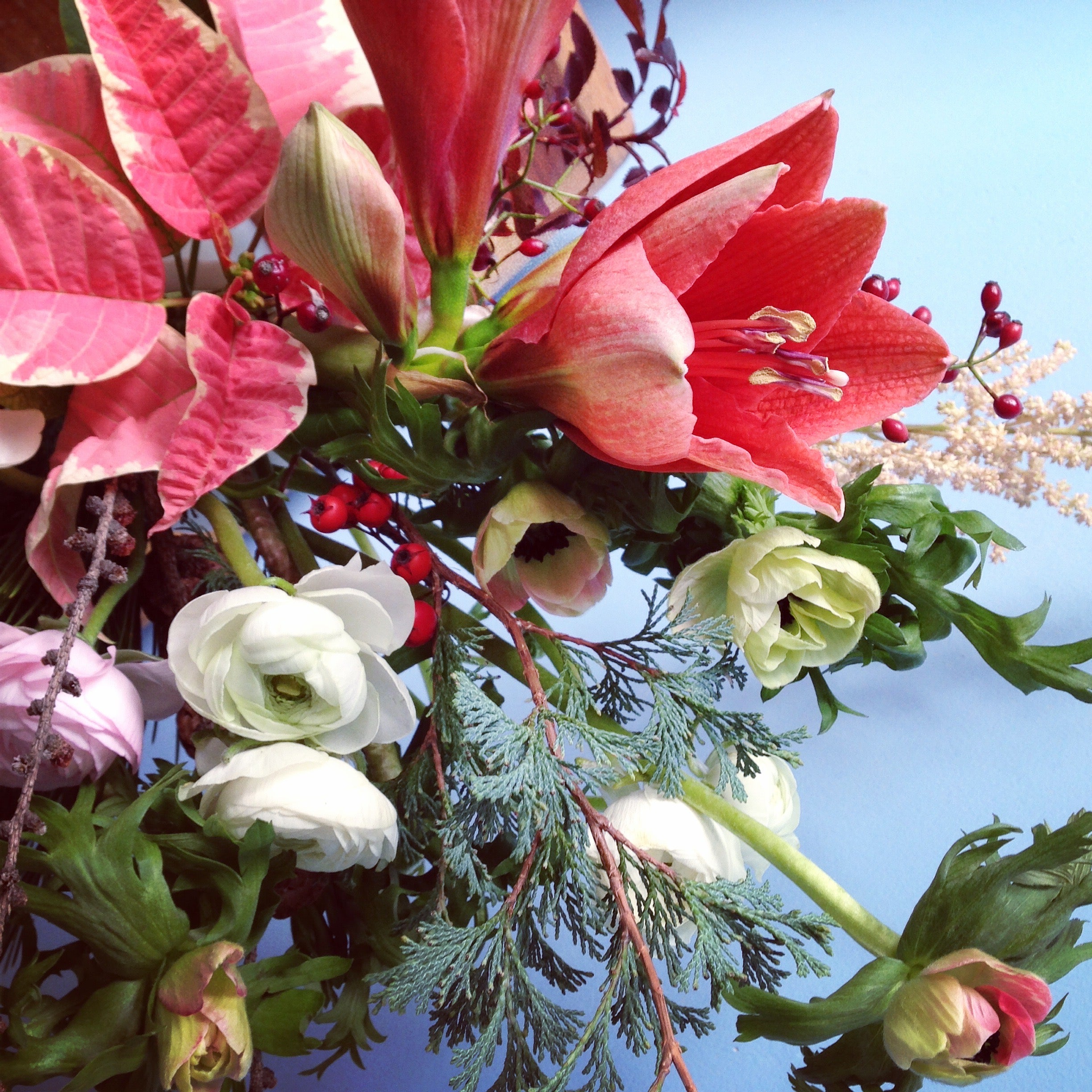 Bright, cheerful florals from beyond Maine’s borders enliven the short days — fresh color and texture to soften winter’s edge.