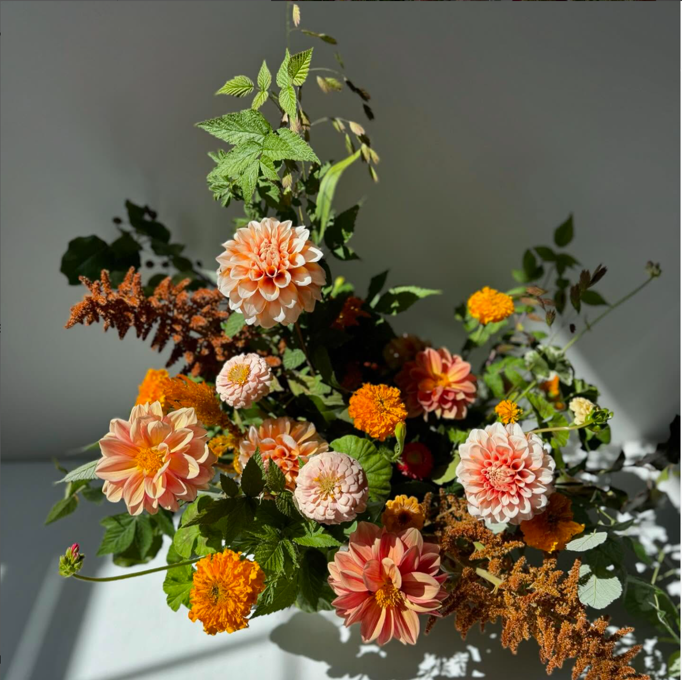 From April through November, our designs follow the rhythm of Maine’s flower farms. Each month brings its own character — shaped by weather, light, and the natural abundance of the season. Every arrangement reflects what the fields are offering, composed in the moment with care and curiosity. Off season, we import our faves from the Dutch market, Japan, and South America.
